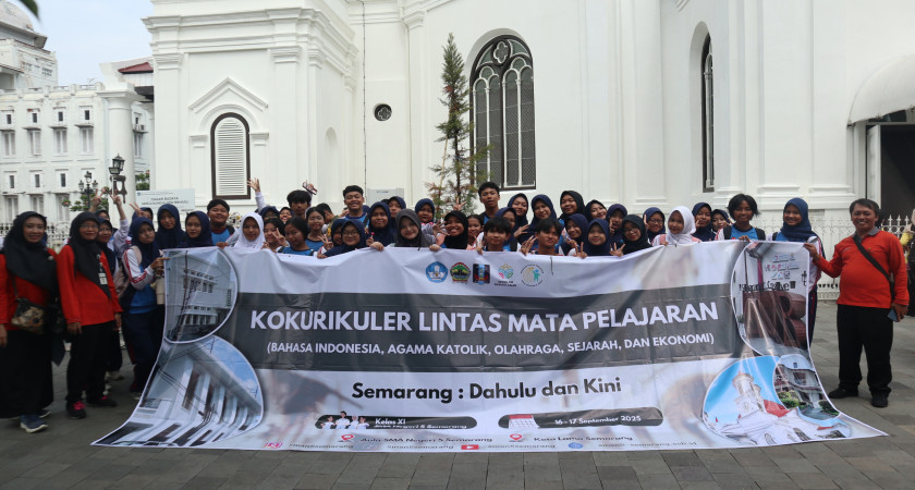 SEMARANG – Puluhan siswa kelas XI SMAN 5 Semarang tidak hanya belajar sejarah dari buku. Selama dua hari, 16-17 September 2025, siswa kelas XI-1 hingga XI-12 terjun langsung ke Kota Lama dalam sebuah proyek kokurikuler lintas mata pelajaran yang berfokus pada tema "Semarang: Dahulu dan Kini". Proyek ini mengintegrasikan materi dari mata pelajaran Bahasa Indonesia, Sejarah, Ekonomi, Agama Katolik, hingga Pendidikan Jasmani dan Olahraga (PJOK).